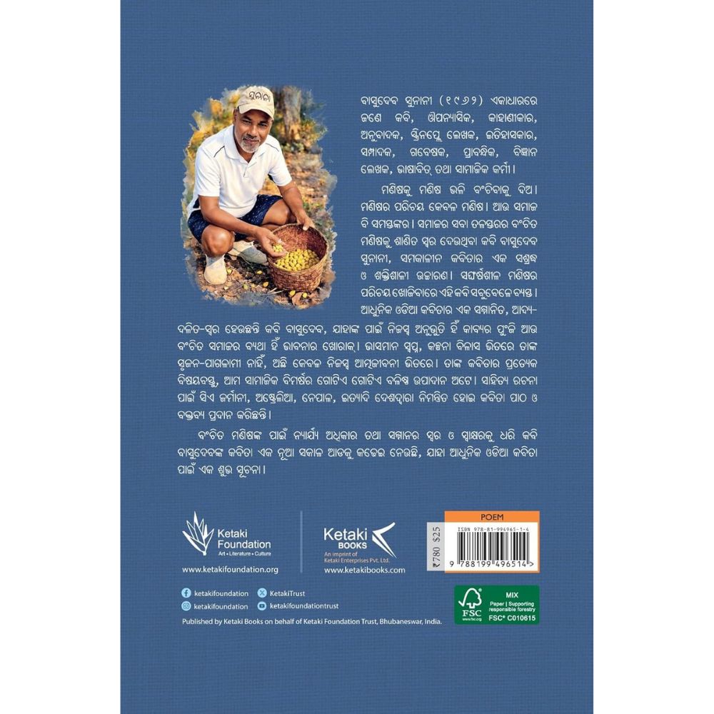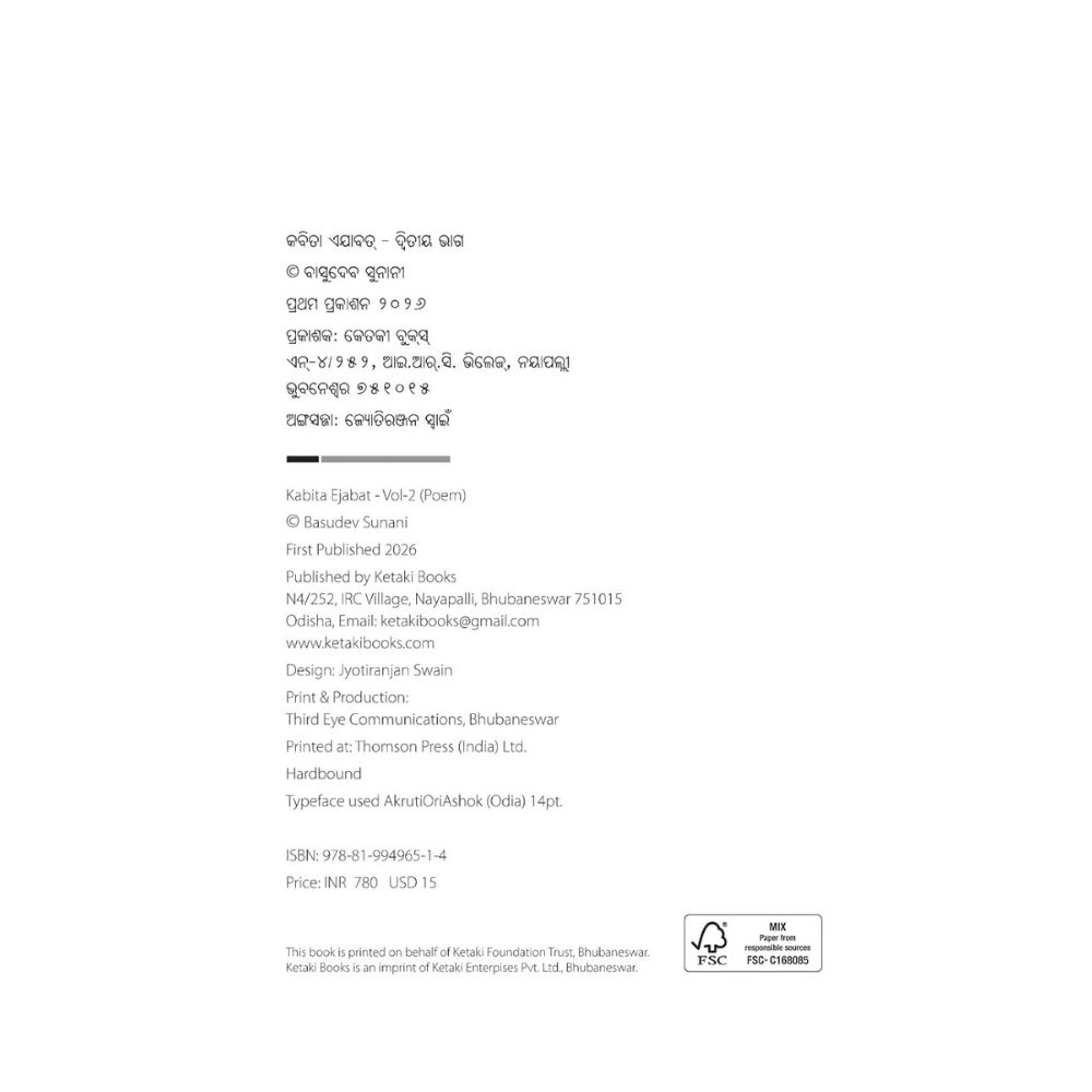 Kabita Ejaabat is a powerful anthology by acclaimed Odia poet Basudev Sunani, bringing together his previously published poems into a single, accessible collection. Created in response to readers, students, and researchers who struggled to find his scattered and out-of-print works, this volume offers a complete glimpse into the poet’s literary journey. Deeply rooted in real-life experiences, Sunani’s poetry reflects the struggles, dignity, and identity of marginalized communities. His verses move beyond imagination, capturing the raw truths of society with honesty and emotional intensity. From his early works like Kalahandi Andhari Akshara to later compositions, each poem carries a strong voice of social awareness and human values. Carefully compiled and published by Ketaki Books, IRC Village, Nayapalli, Bhubaneswar, Odisha, this collection stands as an important contribution to modern Odia literature. Kabita Ejaabat is an essential read for poetry lovers, scholars, and anyone seeking meaningful literature that resonates with real human experiences and social realities.