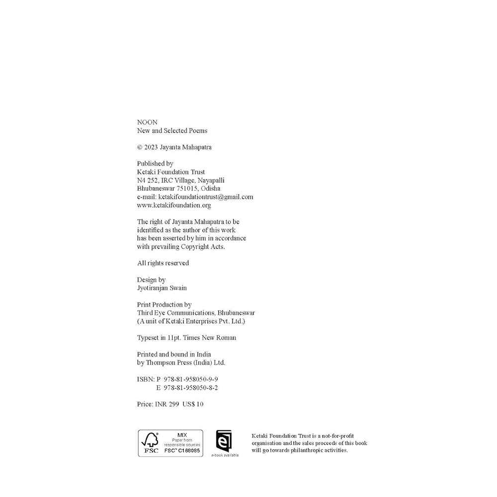 NOON:New and Selected Poems authored by Jayanta Mahapatra